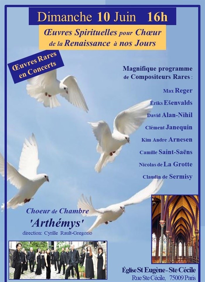 Pour la sortie de leur CD, le choeur de chambre professionnel 'Arthémys' nous propose un programme d'oeuvres et compositeurs rares en concerts.