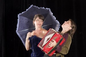 Les comédiennes proposent dix-sept des coquines et coquettes fleurs-femmes de son texte et des extraits de chansons fantaisistes de Trenet, Brassens, Fréhel, Joséphine Baker, Fernandel...