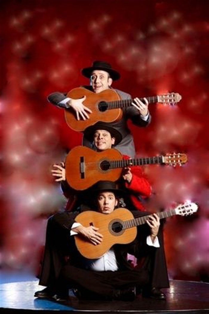 Les trois musiciens de " Olé ! " Paul Morocco, Marcial Heredia et Guillermo de Enday allient la virtuosité de la guitare espagnole à la facétie clownesque.