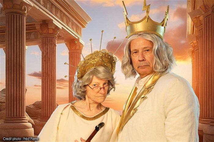 En musique, (sur des airs empruntés à Offenbach, Brassens, Rossini, Gainsbourg, Brel, Barbara, etc.), et en alexandrins, les Dieux de l'Olympe menacés d'extinction à cause de la folie des hommes, se prennent la tête sur les mesures à prendre y échapper.