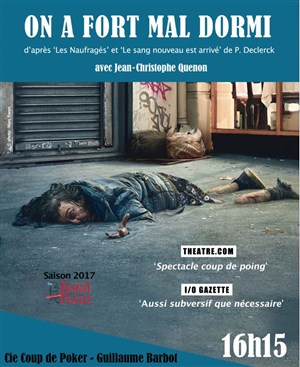 Après Club 27 et Nuit (Prix Lycéens Impatience), une adaptation du livre 'Les Naufragés' sur les SDF de P. Declerck. Reprise au Rond Point en 2017