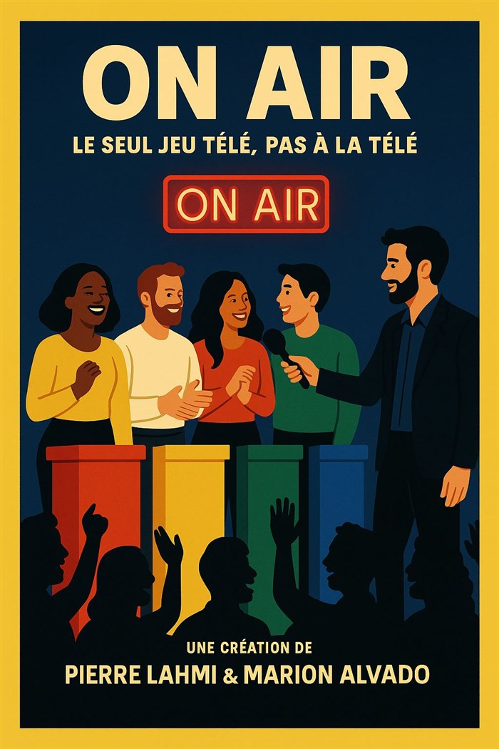 On Air est une expérience vraiment originale : un vrai jeu télé... sans la télé ! L'ambiance est super conviviale, c'est interactif, drôle et tout le monde peut participer. On se prend vite au jeu. Si vous cherchez une soirée fun et différente à Paris, c'est à ne pas manquer !