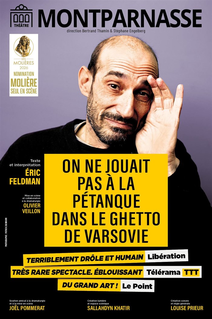 Découvre On ne jouait pas à la pétanque dans le ghetto de Varsovie, qui fait partie de notre sélection d’événements de type Seuls en scène et qui se tient ici : Théâtre Montparnasse -