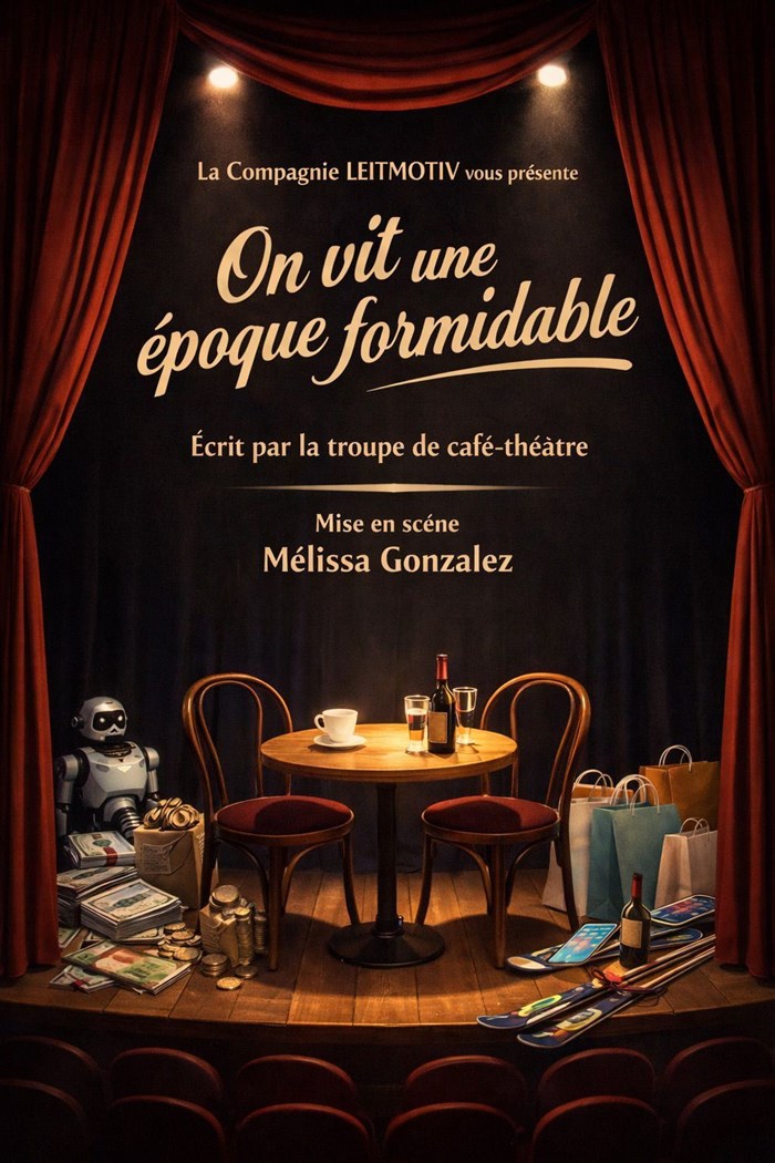 Autour d'une table de café, des scènes s'enchaînent. Des conversations banales, des situations familières... et peu à peu, le vernis craque. On vit une époque formidable est une succession de mini-sketchs qui observent notre quotidien avec un humour grinçant et lucide. Une époque où l'on consomme plus qu'on ne ressent, où l'on skie à 20 degrés sur des pistes artificielles, où les robots remplacent les humains, où le bois devient plastique et où les relations se gèrent à coups de thérapies, d'applications et de slogans bien-être. Entre influenceuses qui vendent le bonheur en kit, rapports de pouvoir bancals, hypocrisies sociales, absurdités écologiques et contradictions morales, la pièce dresse le portrait d'un monde qui tourne parfois à l'envers — mais toujours autour d'un café. Drôle, mordante et profondément actuelle, cette création de café-théâtre questionne nos habitudes, nos désirs et nos renoncements, sans jamais donner de leçon. Juste un miroir. Un peu déformant. Et furieusement drôle