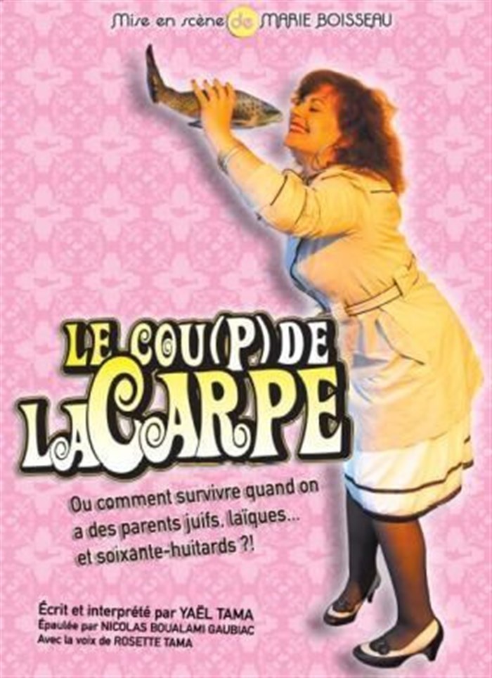 « Le coup de la Carpe » ou comment survivre quand on a des parents juifs, laïques et soixante-huitards?!... Terrible question, à laquelle, Yaël Tama, seule en scène, à la manière d’un « stand up », apporte des réponses personnelles et universelles, en miroir des multiples facettes d’une histoire partagée et avec l’aide inopinée de quelques objets : une bassine, un mini-piano, un hachoir, un fusil, la Bible et, bien évidemment, une carpe !