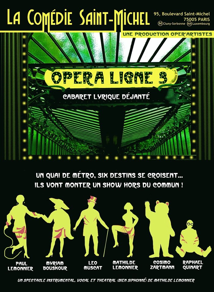"Opéra ligne 3" transporte dans l'univers loufoque et plein d'humour de 5 artistes sans le sou, mêlant comédie et musique, chorégraphies burlesque et airs d'opéras déjantés, une aventure parfaite pour muscler les zygomatiques !