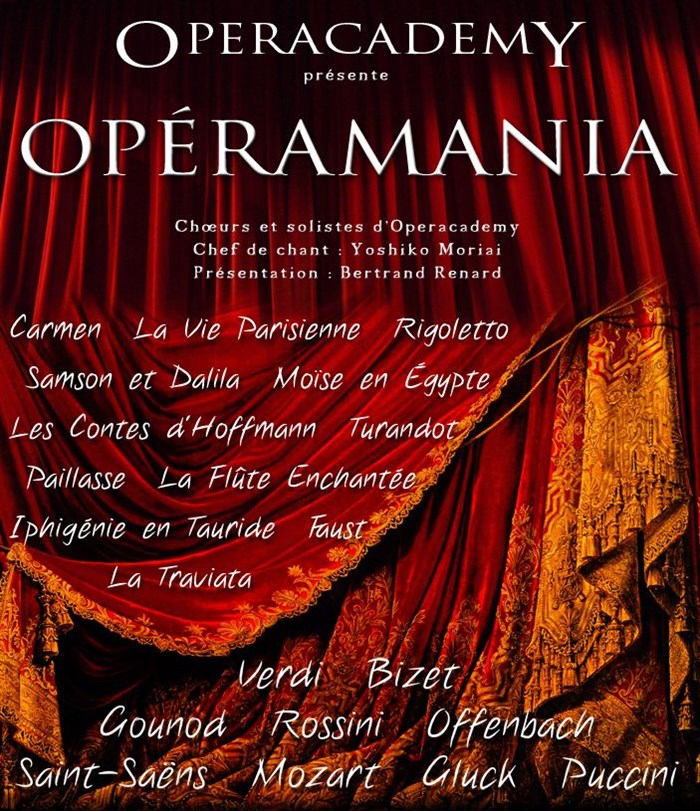 Operacademy présente des extraits de grand choeurs d'opéra avec solistes -Verdi-Gounod-Rossini-Offenbach-Bizet-Gluck- présenté par Bertrand Renard