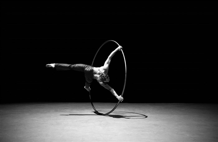 Deux agrès : un trapèze, une roue. Deux pièces atypiques, hybrides, deux approches corporelles à la jonction du nouveau cirque et de la danse.
