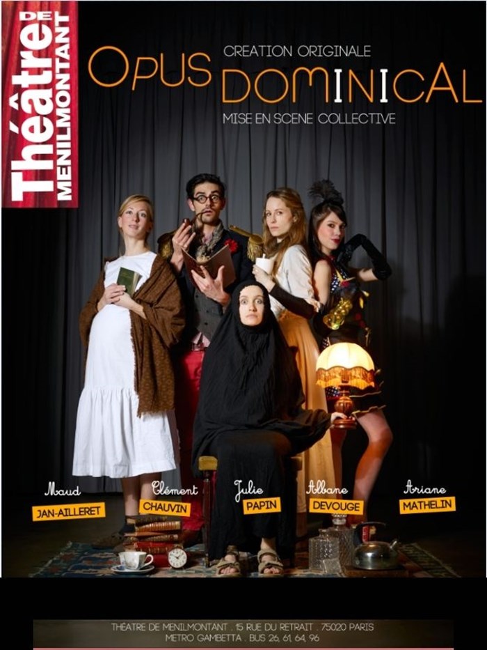 L'ouverture du rideau et la découverte du décor donnent le ton : on aura droit à une personnification de la mort aux yeux de tarsier, et à une bouilloire anachronique qui sera sans conteste au centre des attentions. Le reste est à l'image des cinq premières minutes : conversations saugrenues, intrigue abracadabrante rythmée par quelques passages musicaux... et les rires fusent. La Mort a prévenu qu'elle venait faire son office et chaque protagoniste réagit à sa manière face au problème moral qu'elle pose. Il y a ceux qui aiment la vie, ceux qui croient l'aimer, et ceux qui la haïssent. C'est cruel, mais on se réjouit de savoir lequel va traverser le Styx, car c'est superbement interprété et subtilement écrit. L'heure de spectacle semble écourtée par l'engouement qu'il propose, même pour les retardataires qui n'ont pas eu la chance d'avoir une place assise. Oui, car pour cette dernière date à Ménilmontant, la salle était pleine. Certainement la meilleure preuve qu'"Opus Dominical" mérite de perdurer. Une chose est sûre, la Mort n'en viendra pas à bout si facilement.