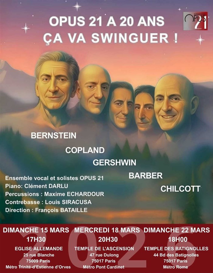 Découvre Opus 21 à 20 ans ça va swinguer !, qui fait partie de notre sélection d’événements de type Musique classique et qui se tient ici : Eglise allemande de Paris -