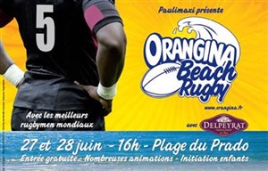 Nombreuses animations (concours de pénalités...), Pompom girls, démonstration de Wakeboarder avec le " Orangina Wake Jam " et sa piscine de 80m aux abords du stade, initiation au Beach rugby, buvette Orangina,.... Venez nombreux sur la plage du Prado pour voir vos joueurs préférés se défier dans une ambiance estivale et très festive !!! Le Beach Rugby, dont le jeu est similaire au rugby à toucher, confronte 6 équipes, composées de joueurs professionnels internationaux en activité, de cinq joueurs et trois remplaçants sur un terrain de dimension réduite (35x50 mètres). La durée des matches est de 2x5 minutes avec de brèves mi-temps. Par ses règles simplifiées (pas d'arrêts de jeu, ni de touches, mêlée, transformations ou coup de pied arrêté), les matches promettent des actions spectaculaires.