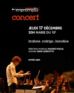 Bien: j'ai découvert la symphonie No. 2 de Borodine, que j'ai appreciée Moins bien: la salle des fêtes de la mairie du 15eme n'est absolument pas appropriée aux concerts classiques. Les instruments à vent placés en hauteur étaient prépondérants et de ce fait ils ont, semble-t-il, joué un ton en dessous de la normale ce qui rendait presque une impression de fausses notes (trompette, cor) dûe au manque de puissance. Pareil pour la guitare, à part quant il jouait seul, je voyais bouger les mains de ce talentueux soliste mais je n'entendais pas ce qu'il jouait car complètement noyé dans l'orchestre. Très dommage.