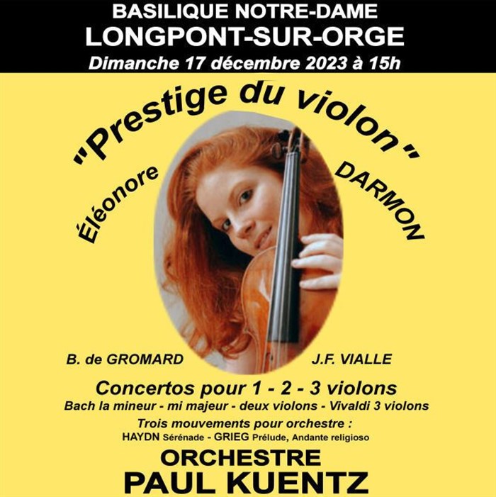 Eléonore Darmon est la flamboyante jeune violoniste, nommée récemment super-soliste à l'Opéra de Nancy. Elle sera entourée de Bérangère De Gromard et Jean-François Vialle, brillants solistes habituels de l'Orchestre Paul Kuentz.