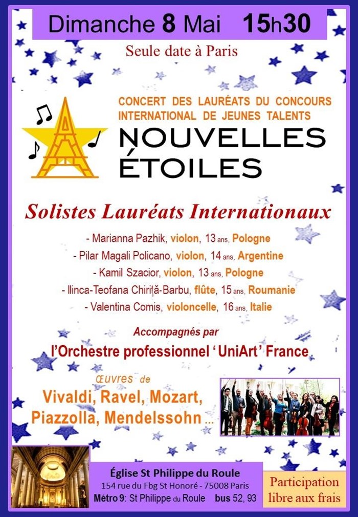 Concert des lauréats du concours international "Nouvelles étoiles", accompagnés par l'Orchestre professionnel UniArt France.