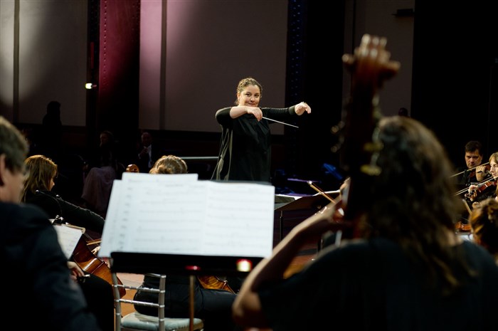 Ce qui pourrait être un simple hommage à l'auteur des musiques de West Side Story devient, sous la baguette de la cheffe, un événement où tous les arts se mêlent. Bernstein n'était-il pas aussi à l'aise dans l'art de la comédie musicale que de la symphonie, ou de la musique de ballet ou de chambre ?