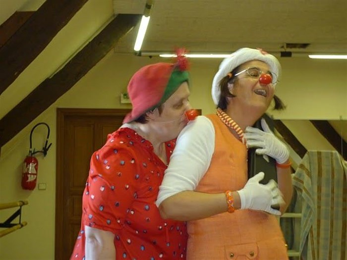 •et surtout prendre conscience des atouts comiques de son physique mais aussi du silence (la présence et le non verbal), bref de son potentiel clownesque, simplement, avec confiance, en se faisant confiance. Au delà de la prise de risque personnel, un atelier de clown est d'abord un lieu de bienveillance de la part du groupe, ou tout jugement sur l'autre est bannit, et un moment de détente avec fous rires garantis à chaque séance.