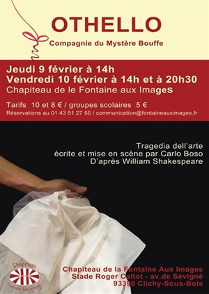 Othello est une tragédie noire adaptée pour la Commedia Dell'Arte par la cie Mystère Bouffe.