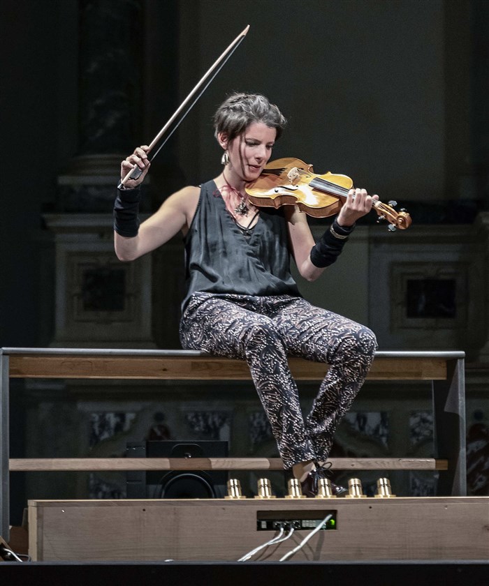Depuis 2017, Emmanuelle Dauvin ressuscite une pratique étonnante venue de l'époque baroque : violoniste, elle s'accompagne elle-même sur le pédalier d'un orgue.