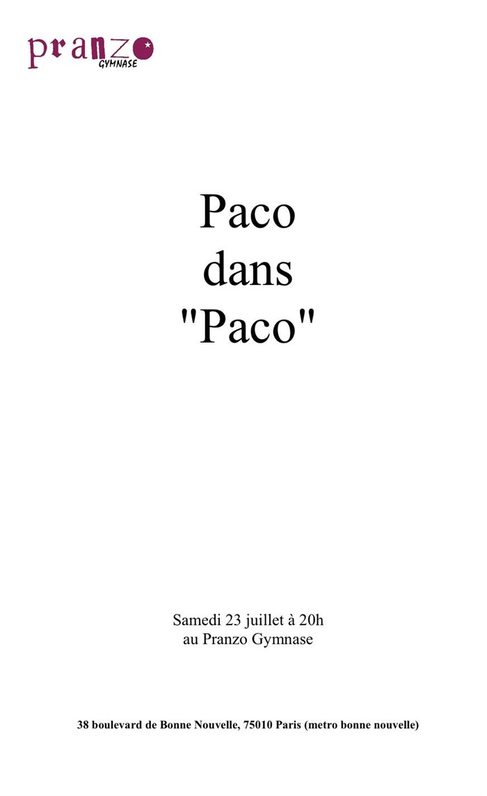 Tu veux savoir ce qu’ont pensé les spectateurs et la presse de cet événement : Paco Dans Paco - Pranzo Gymnase ? Découvre leurs avis éclairés et prépare-toi à vivre un moment d’exception à ton tour en réservant tes places !