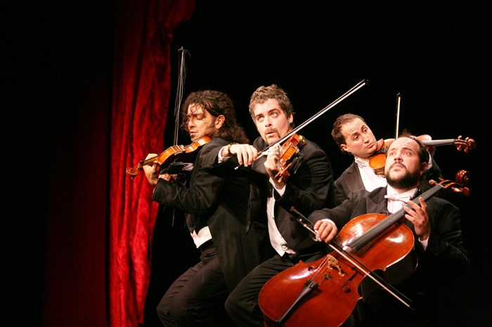 Ce Quatuor présente "un surprenant concerto" mêlant habillement le génie humoristique de la Compagnie Yllana au talent du virtuose Ara Malikian.