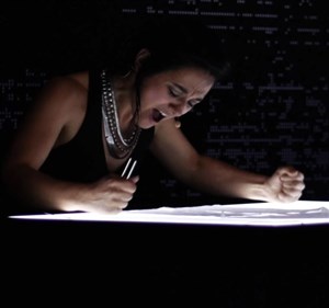 La Ralentie s'appuie sur le texte éponyme du poète Henri Michaux. À la lisière de l'ésotérisme, l'auteur explore la frontière entre le dedans et le dehors, l'intime et le vide. Divisée en deux espaces, la scène devient le lieu où s'expriment, s'observent et se cherchent deux personnages aux attitudes contrastées : la cantatrice, dont la parole et le chant s'entrelacent pour plonger l'auditeur dans une atmosphère onirique ; le percussionniste dont chaque geste semble naître d'une puissante et irrépressible vie intérieure.