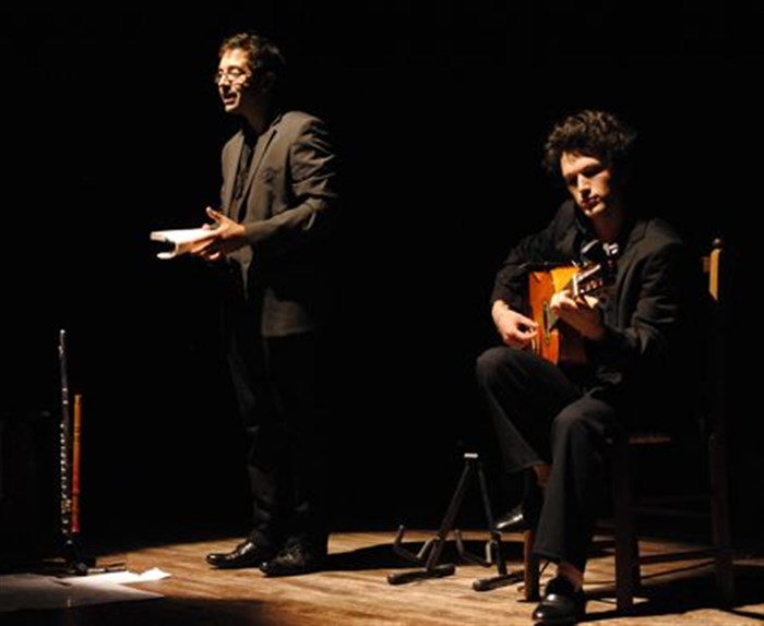 Un spectacle d'Alem Surre-Garcia, poésie et Guillaume Lopez, chant, flûtes, Maël Goldwaser, guitare, Nicolas Bourdeix, dansa occitana, et avec la participation exceptionnelle de Paloma Pradal, baile flamenco.