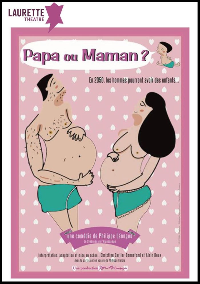 Ils forment un couple recomposé... Et après avoir eu deux enfants, pour Elle, c'est sûr... c'est à Lui de s'y coller... 9 mois à se voir changer en montgolfière... Non ! Il ne peut pas l'imaginer ! " Rassure-toi mon chéri, tu ne ressembleras pas à un éléphant... " ! Alors... " Papa ou Maman ? "