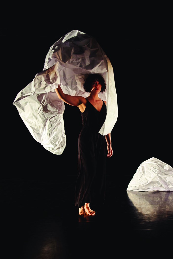 Sans narration, d'action en action, une danseuse dialogue avec le papier