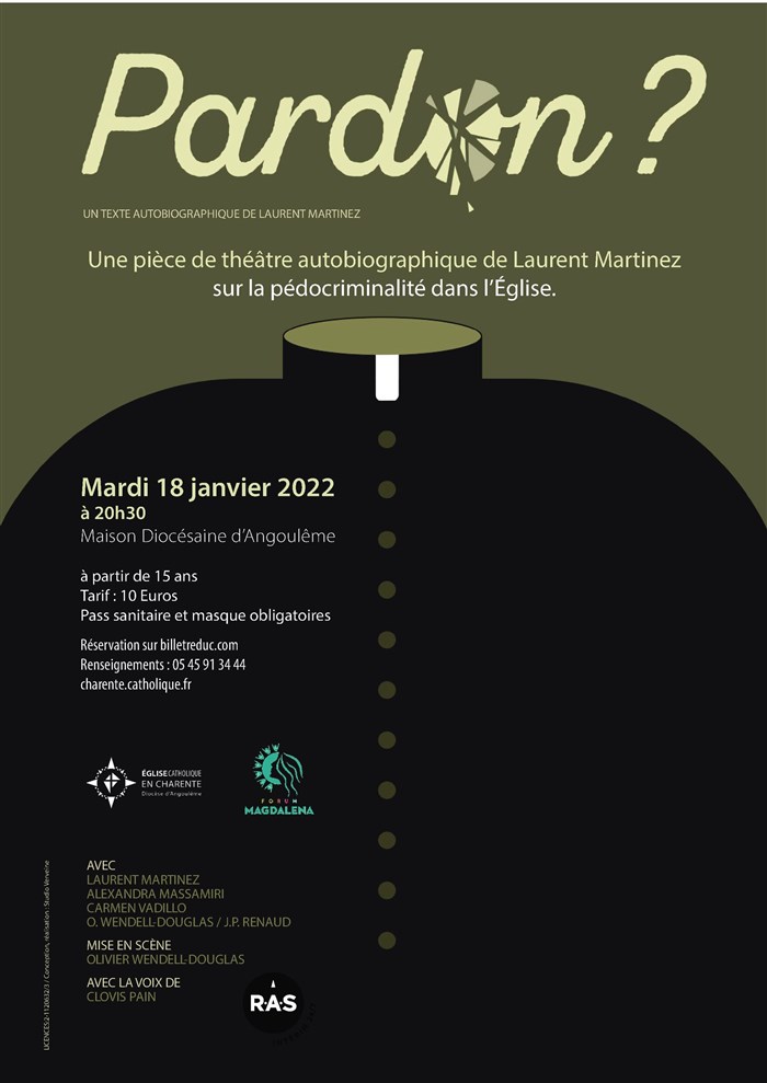 Merci pour cette pièce fort bien interprétée et qui traite le sujet d'une manière très ajustée : avec délicatesse et force tout à la fois, en même temps que sans complaisance pour les tabous, l'omerta et les (grandes) faiblesses de l'Eglise dans sa façon de gérer la pédophilie et la pédocriminalité. Le contenu, autobiographique, permet l'expression vive d'une victime sur le mode de l'art et ouvre à plusieurs des questions que pose un tel drame. Les points les plus difficiles sont évoqués et appellent autant à une "conversation", au sens le plus noble du terme, qu'à d'urgents changements concrets de l'appareil ecclésial. L'échange qui a suivi, très humain, simple et convivial, avec la troupe, nous a permis de repasser de l'expression théâtrale au dialogue et de mesurer l'engagement des artistes dans la transmission d'un message fort. C'est une excellente pièce, à recommander vigoureusement. Je pense qu'elle aurait toute sa place dans le monde de l'enseignement (catholique ou pas) et de l'éducation, pour un public d'adultes et de jeunes. J'ose dire que, dans ce domaine où l'être humain tout entier est concerné - parce que profondément blessé - la "corporéité" du théâtre, précisément, donne une dimension de profondeur et de vérité que ne rendent pas de la même façon même les articles les plus sérieux. J'ai aussi relevé le sens théologique que peut avoir (au moins selon moi) la mise en question de la "hiérarchie" par la vie religieuse (qui a cependant aussi largement sa responsabilité dans ce drame). Merci à vous !
