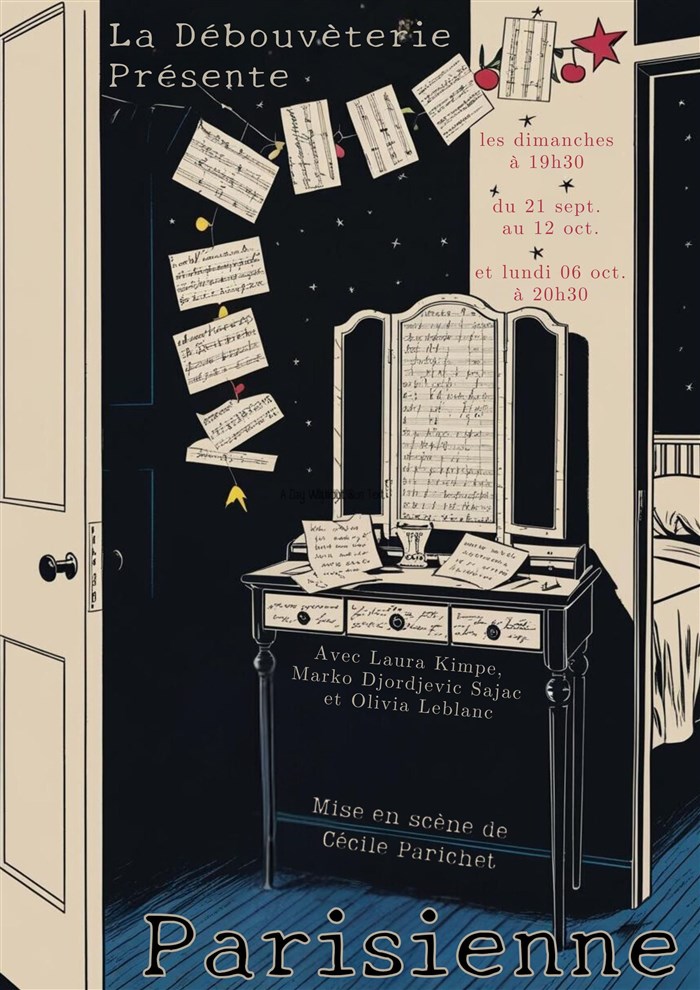 La Parisienne est un spectacle complet écrit, joué, chanté et raconté par Laura Kimp. Avec sa compère metteur en scène et deux excellents musiciens, elle donne vie à une Parisienne gouailleuse à laquelle on s’attache au fil de la représentation. Les textes, qui incluent de superbes poèmes sont entrecoupés de chants interprétés par Laura Kimp d’une voix superbe qui touche et transperce. La diction est parfaite. Un seul bémol : il fait chaud dans le minuscule théâtre, qui a la gentillesse de prêter des éventails !