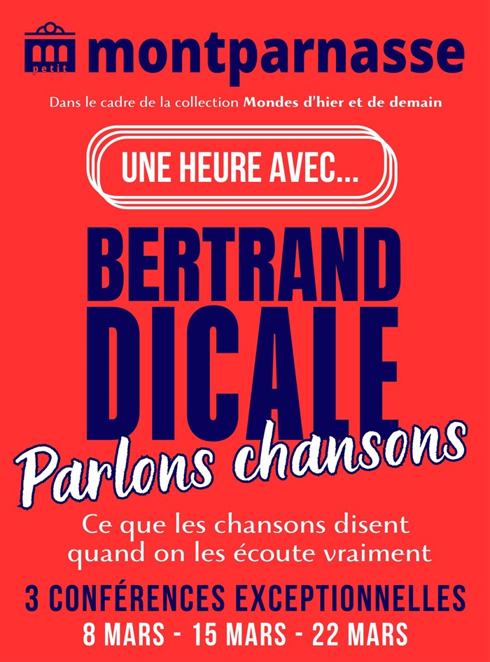 Le dimanche soir au Petit Montparnasse, Bertrand Dicale parle à sa manière de la chanson française. Explorant ses coulisses depuis plus de quinze ans sur la radio France Info, auteur de plusieurs documentaires télé et de quelques dizaines de livres dont le Dictionnaire amoureux de la chanson française, il nous invite à une traversée résolument non académique de la mémoire et du présent de la chanson.