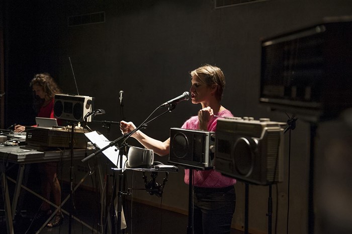 Avec Parlophonie, les musiciennes Anne-Laure Pigache et Anne-Julie Rollet proposent une performance vocale et radiophonique.