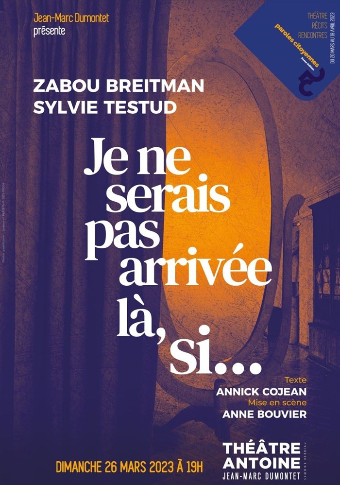 L’événement Paroles Citoyennes : Je ne serais pas arrivée là, si... | avec Zabou Breitman et Sylvie Testud de type Théâtre contemporain, organisé ici :