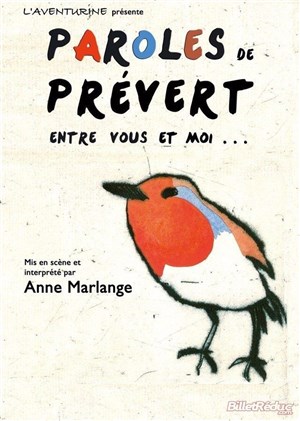 Anne MARLANGE nous fait redécouvrir l'univers poétique de Prévert avec délicatesse, grâce, humour et humanité. Une diction parfaite, une présence physique étonnante, toute en retenue, une mise en scène équilibrée et ingénieuse. Un spectacle magique accompagné d'effets musicaux très justes.
