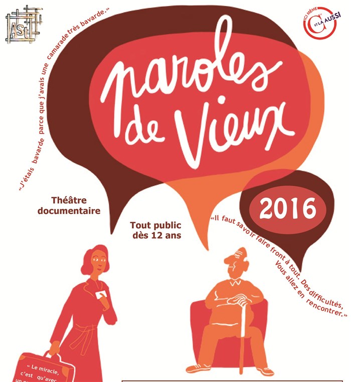 Paroles de vieux est un spectacle de théâtre documentaire écrit à partir des interviews de 17 personnes âgées.