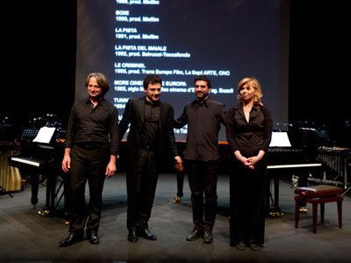 La partition musicale sera interprétée, en direct, par le Parco della Musica Contemporanea Ensemble : Lucio Perotti (piano), Giuseppe Bulgarella (piano), Antonio Caggiano (percussions), Fulvia Ricevuto (percussions).