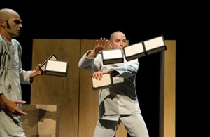 Ces virtuoses jouent du violon à quatre mains, se tiennent en équilibre sur des jeux de construction grandeur nature, font de la musique en jonglant et inventent un univers où se côtoient le sens du mime et de l'absurde !