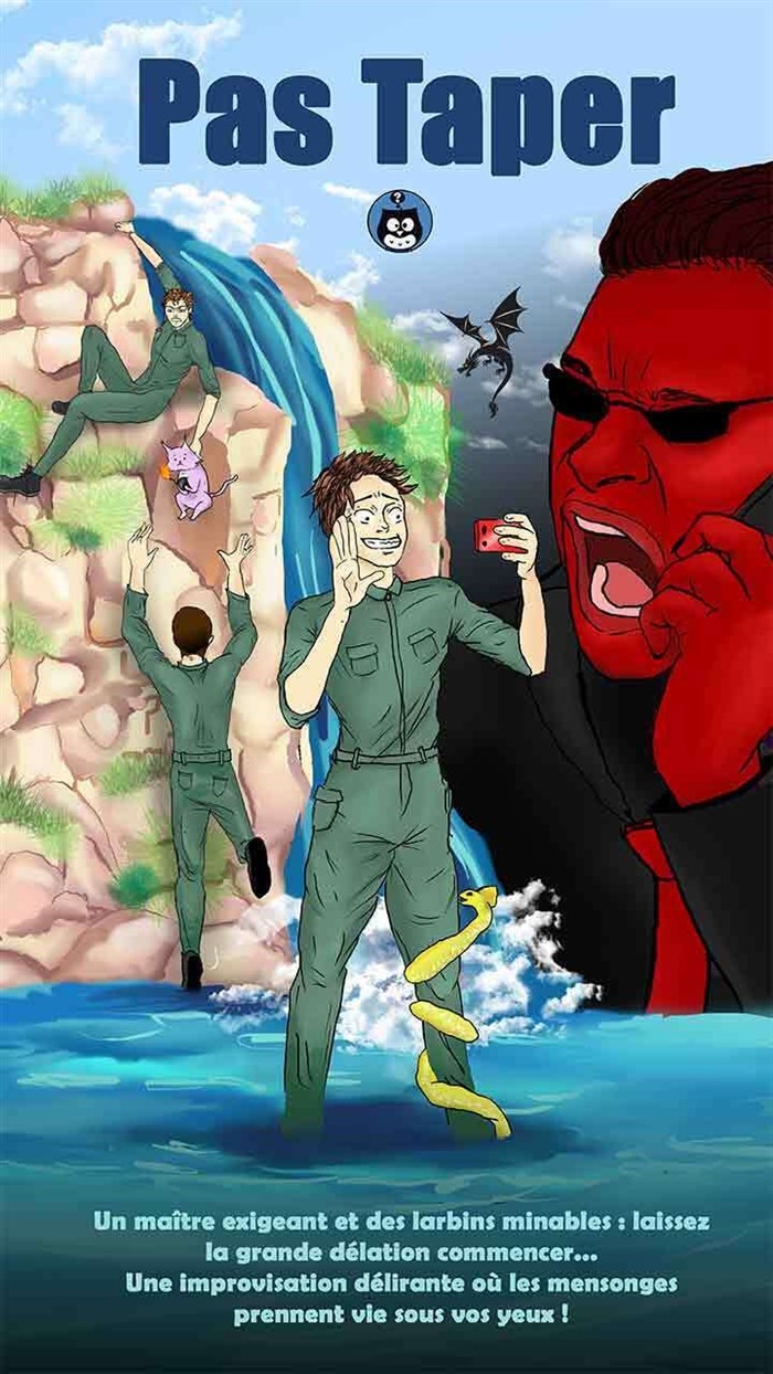 Dans cette création déjantée 100% improvisée et inspirée du jeu "Oui, Seigneur des Ténèbres", 3 larbins minables vont devoir user de toutes les astuces et de tous les coups bas pour rejeter la faute sur leurs collègues, à grands coups de versions des faits déformées et de basse délation.