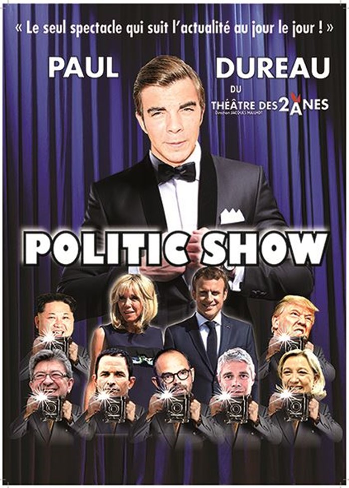 Avec Politic Show, le spectacle qui suit l'actualité au jour le jour, Paul Dureau présente un spectacle brillant fait d'analyses humoristiques de l'actualité, de sketchs, chansons et imitations...