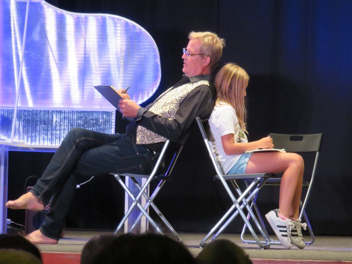 autour du piano Myriam Frinault et Jean-Jacques Durand dans le rôle du mentaliste, mélangeant humour,musique et mentalisme les artiste ont offert un spectacle rythmé et amusé