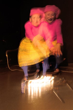 Yumi Fujitani, danseuse, et Carole Arcega, cinéaste plasticienne, jouent sur l'imagerie voyeuriste de la nudité sous verre, les deux artistes composent un savant breuvage entre poésie et burlesque.