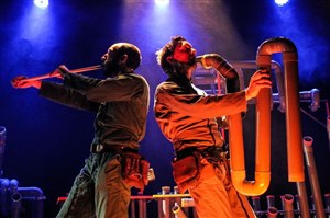 Des tuyaux en PVC de toutes tailles et de toutes formes s'entortillent sur scène. Une drôle de machinerie dont s'occupent quotidiennement deux plombiers, clés à molette à la main... et des rythmes plein la tête ! De ces tuyaux, ils font des flûtes, des saxos, des percussions, et se livrent à des expériences sonores aussi ridicules qu'astucieuses. Une musique bien rodée... jusqu'à ce que surchauffe la machine et s'emballe la cadence !