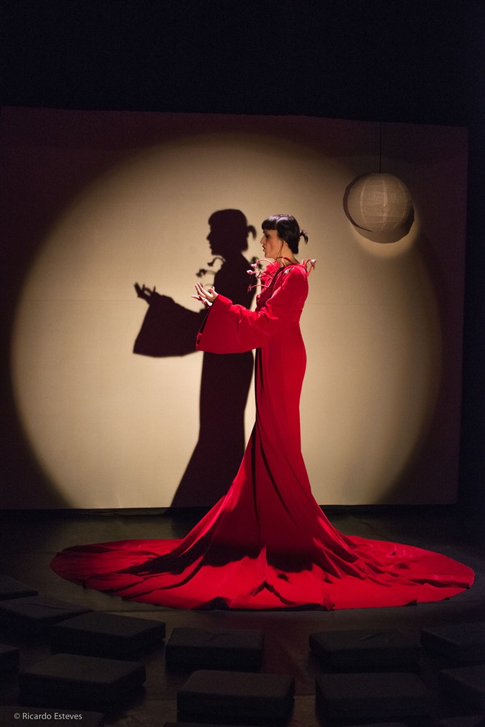 Toute de rouge vêtue dans une ample robe de Castafiore, Charlène Martin joue de la voix et de la langue, tour à tour parlées et chantées, mots et images sonores ou personnages oniriques. Dame Bouch'Opéra joue des mots de la poétesse complice Nathalie Desouches et enchaîne, toujours vive, des pièces courtes, comme autant de comptines enfantines pour explorer l'imaginaire et les états de l'enfance, évoquant la vie pré-natale, l'ouverture au monde, la découverte du corps et des rêves. Mais attention, comme avec les sirènes, on peut se laisser emporter par l'incroyable chant de cette Dame Bouch'Opéra.