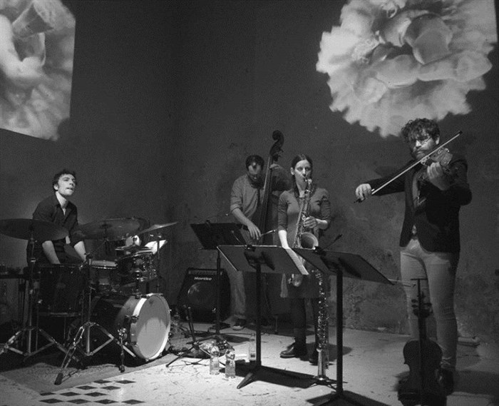 avec lui, alexandra Grimal, Ivan Gélugne et Florian Satche, des improvisateurs réunis par une passion commune pour les projets pluridisciplinaires, interprètent cette bande son réinventée où se rencontrent un grand cinéma d'époque et l'écriture d'un artiste d'aujourd'hui. Théo ceccaldi : violon, alto, composition, direction artistique Alexandra Grimal : saxophones Ivan Gélugne : contrebasse Florian Satche : batterie, percussions