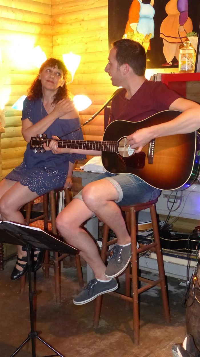 Le bonheur c'est simple comme les notes de musique, contées en guitare ou ukulélé par Alexandre Péroys, ou lorsqu'elles s'envolent en arpèges légers d'une flûte traversière, venues par surprise du fond de la salle, merci Pascal.