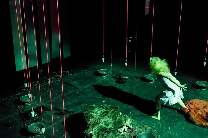 Offrant une incarnation musicale aux troubles, aux afflux du sang, aux souffles et aux soupirs, entourant l'héroïne de machines emballées, le spectacle dessine peu à peu l'enfermement de Phèdre et conduit le spectateur au coeur même du drame – non pas le coeur figuré ou symbolique mais le coeur bien vivant, et battant follement, de l'héroïne perdue.