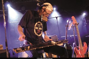 Guitare, chant... et percussions... On peut dire que le bonhomme en a sous le pied (les deux) ; grosse caisse et caisse claire, charleston, cymbale et tambourin... Et l'harmonica toujours en bandoulière !