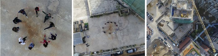 Sous les drones et leur souffle assourdissant, le geste est placé sous surveillance. Les corps sont vulnérables mais de la scène au camp de réfugiés, le mouvement dès lors circule, se transmet, se réincarne d'un corps à l'autre donnant à une communauté éphémère, autour d'une danse poreuse, au plus près de l'épiderme.