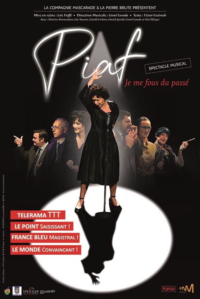 Texte d'une intensité vibrante mêlant subtilement fiction théâtrale et histoire authentique, acteurs envoutants aux traits réalistes, deux bouleversantes chanteuses à la voix saisissante associée à de mythiques chansons font de PIAF je me fous du Passé un spectacle musical haletant et passionné !