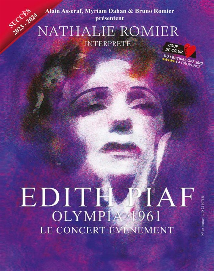 Considérée comme l'une des meilleures interprètes de la Môme, Nathalie Romier reconstitue le concert mythique donné à l'Olympia en 1961 qui enregistra un record inédit de 20 minutes de Standing-Ovation, record jamais égalé à cette époque par un artiste français.
